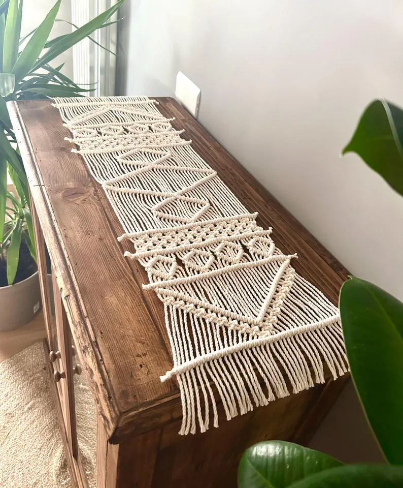 رانر رومیزی مکرومه طرح گره برجسته دورنگ رنگبندی و ابعاد به دلخواه کد 1298۱٬۵۰۰٬۰۰۰ تومان