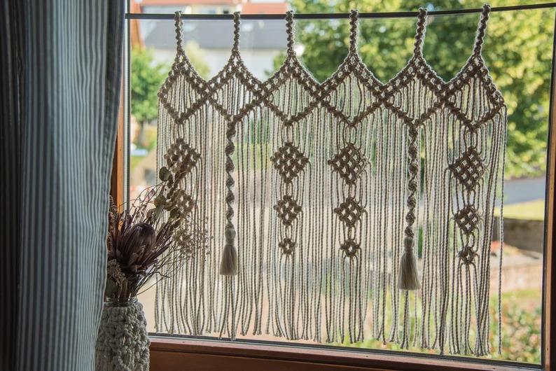 پرده مکرومه کوتاه مخصوص پنجره ها رنگبندی و ابعاد قابل تغییر کد سفارش محصول 021۲٬۸۰۰٬۰۰۰ تومان
