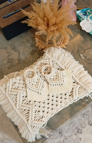 زیربشقابی مکرومه مدل چهارگوشه مستطیل ریشه دار رنگبندی و سایز دلخواه کد سفارش ۲۵