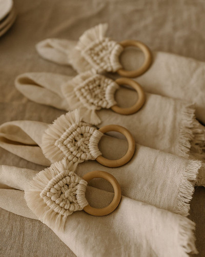 نپکین(حلقه ی دستمال سفره) جای دستمال رومیزی مکرومه رنگبندی به دلخواه کدسفارش کالا۰۴۹۶