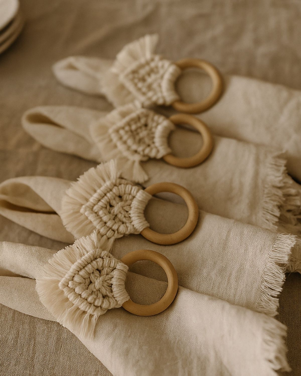 حلقه دستمال سفره (حلقه نپکین) جنس مکرومه رنگبندی و مدل و سایز دلخواه کد سفارش 30011