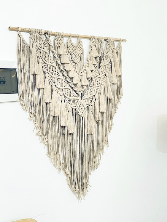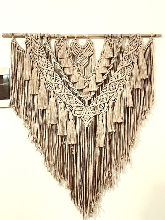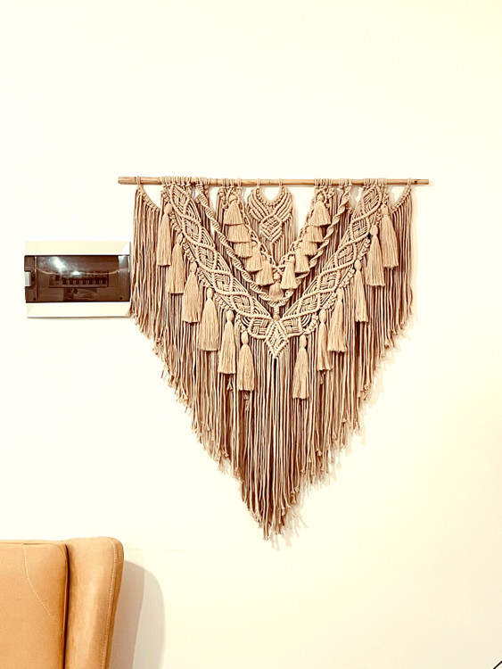 دیوارکوب مکرومه طرح الماسی سبک مدرن رنگبندی دلخواه سایز چوب۸۵ سانت کد ۲۵۶۰
