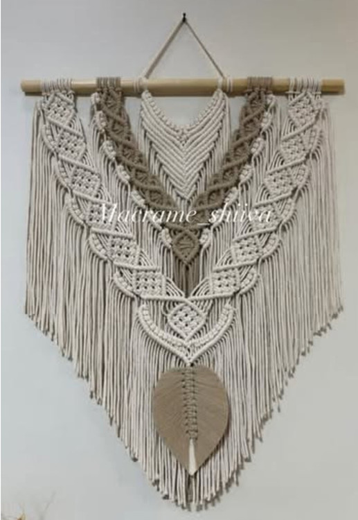 Macrame wall hanging, classic design with hanging leaves, twisted macrame thread type, optional color, order code 1215