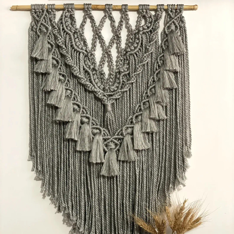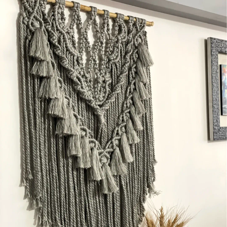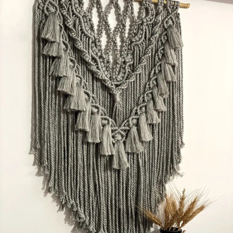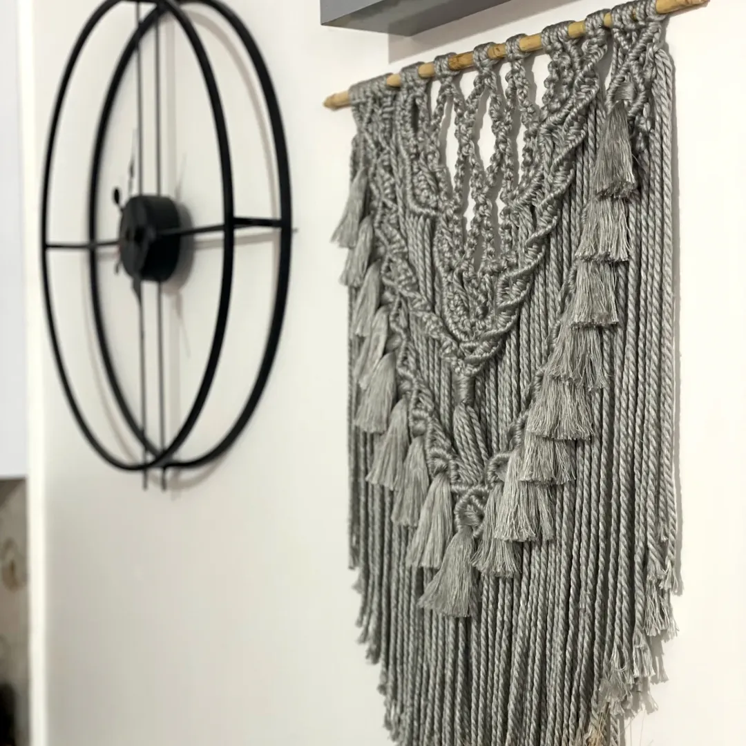 آویز مکرومه بوم ریس قابل سفارش در رنگ ها و سایزهای مختلف.طول چوب ۷۰ سانت