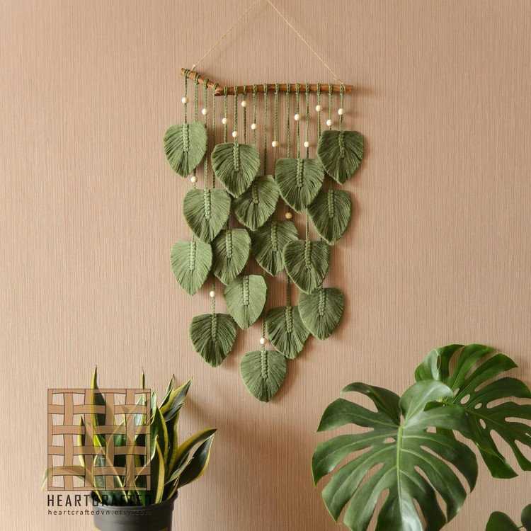 Macrame wall hanging, medium leaf model, hanging design, custom color, order code p11