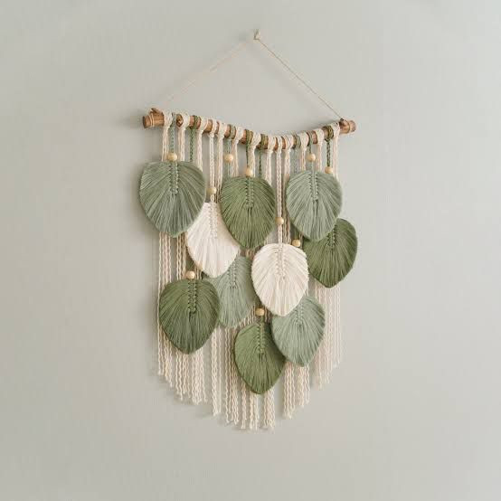 دیوارکوب و آویز دیواری مکرومه مدل برگ آویزی مهره دار رنگبندی دلخواه کد سفارش ۰۳