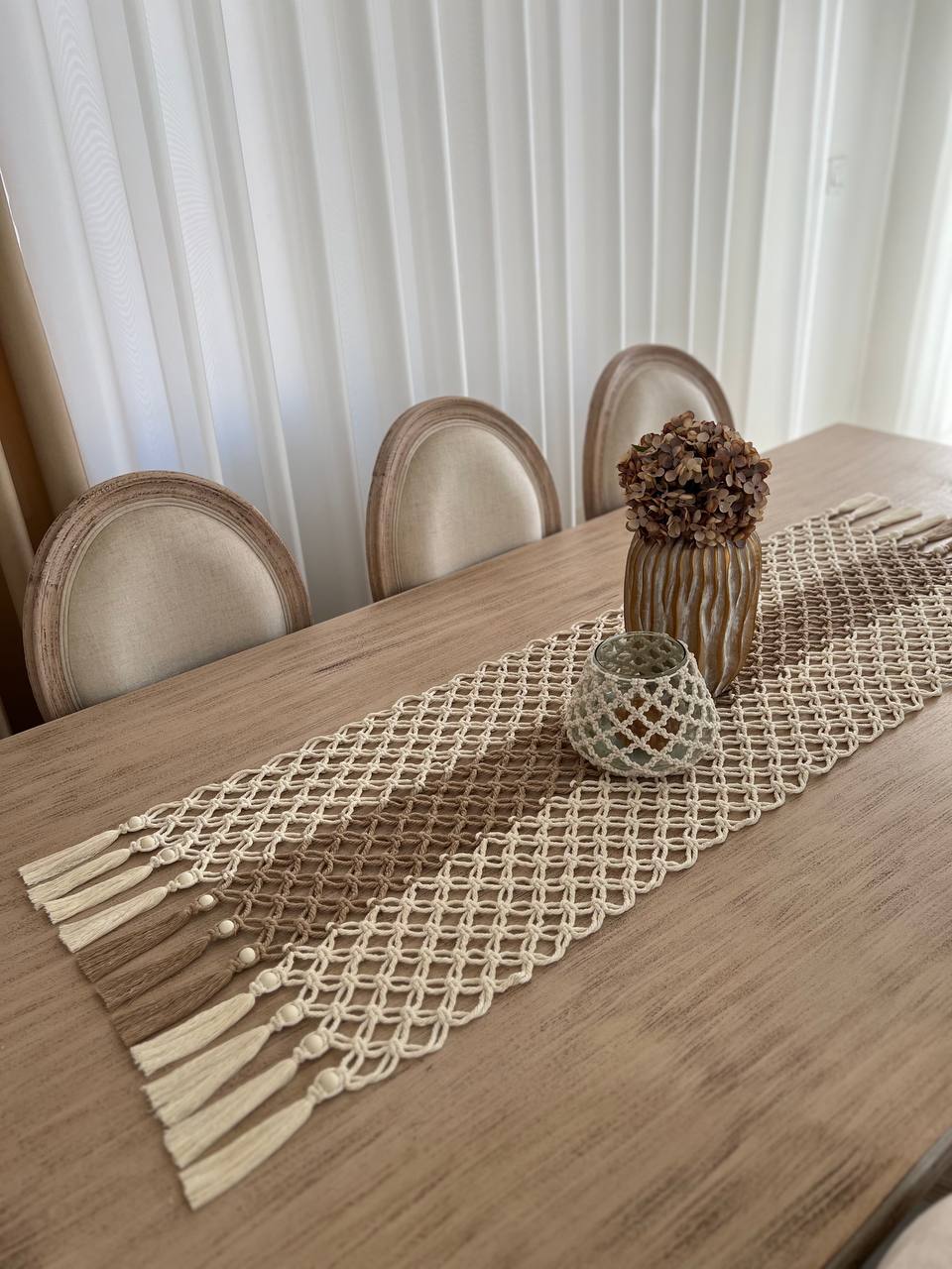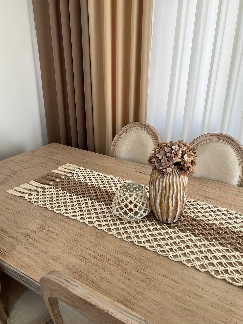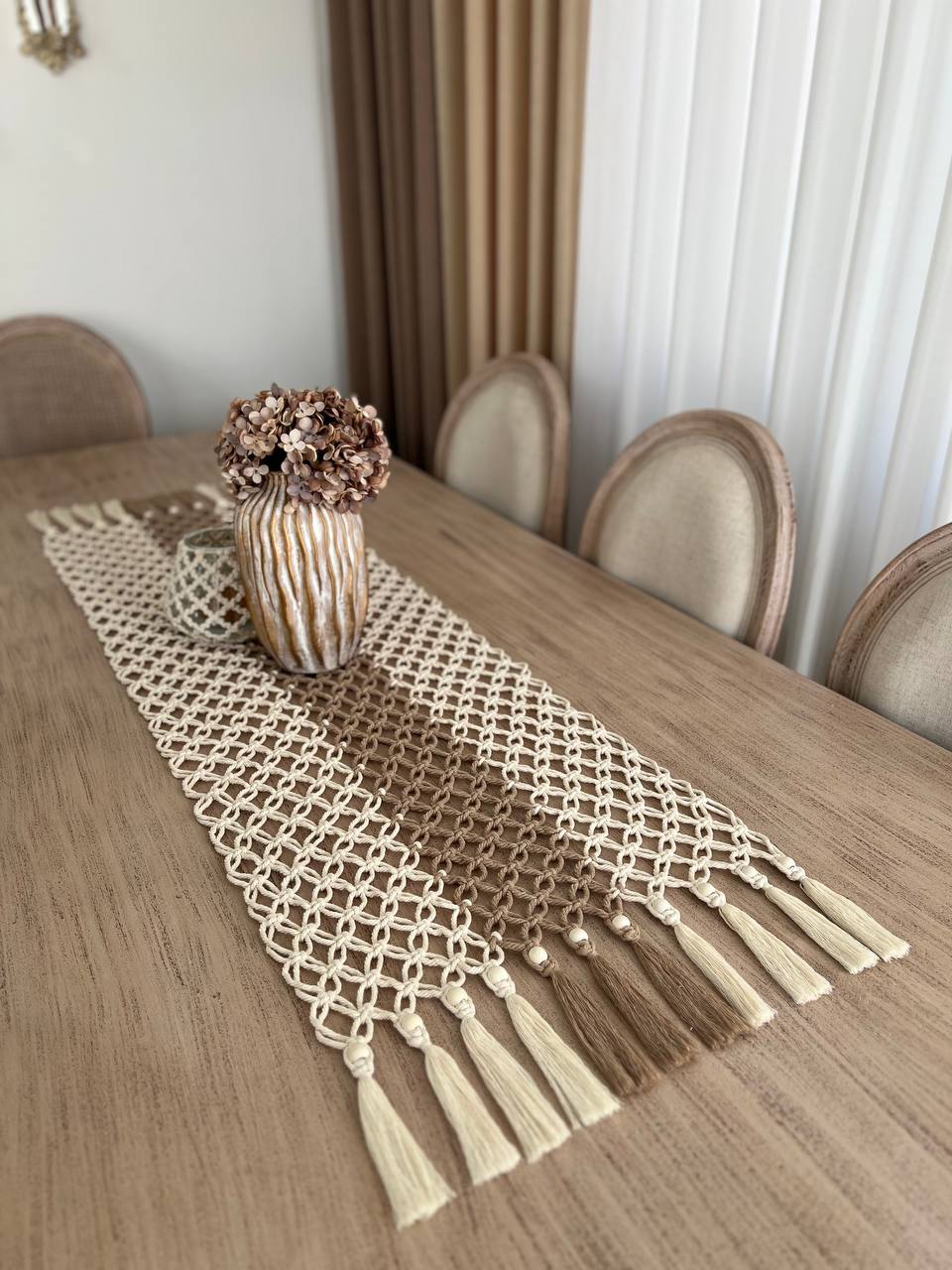 رانر مکرومه طرح گلریز مهره دار رنگبندی و سایز قابل تغییر کد سفارش ۲۴