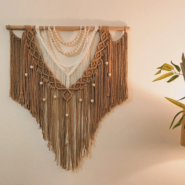 دیوارگوب مکرومه با چوب ۸۰ سانتی دورنگ با رنگهای نود و ترند