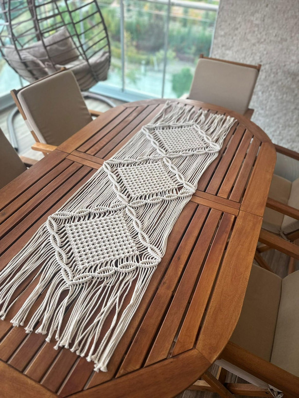 Macrame runner, flower and leaf rhombus model, color and size can be changed, order code 94