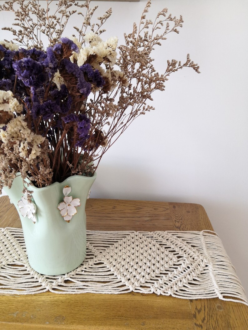Macrame runner, popular diamond design, color and dimensions can be changed, product order code 0404