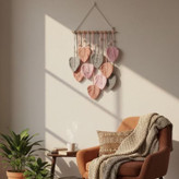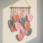 Macrame wall hanging with pink leaf design, color can be changed, product order code 010