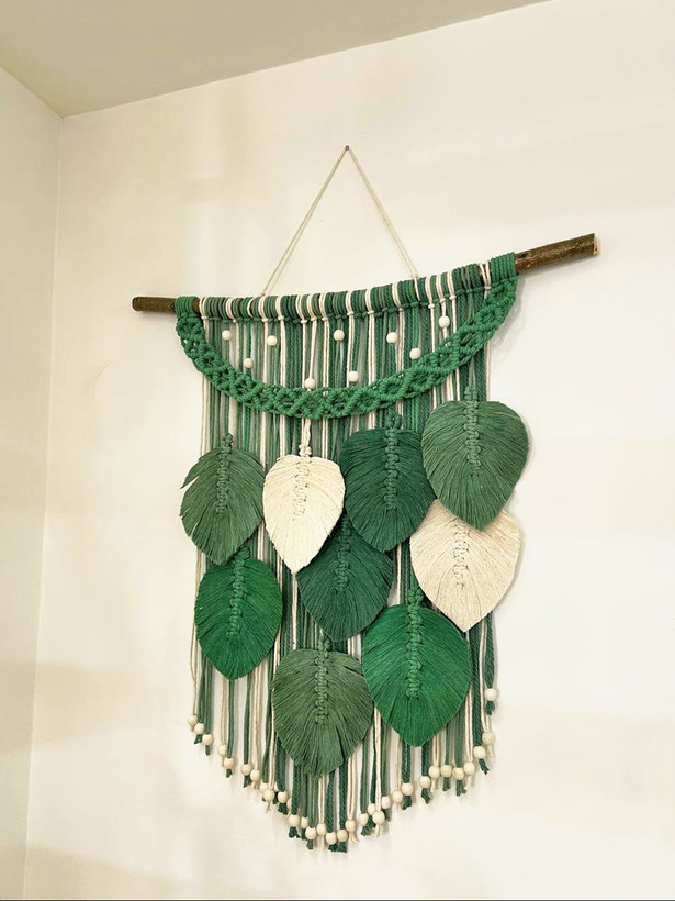 دیوارکوب مکرومه نه عددی برگ سبز رنگ سایز مدیوم ترکیب رنگ دلخواه کد سفارش کالا ۰۱۸