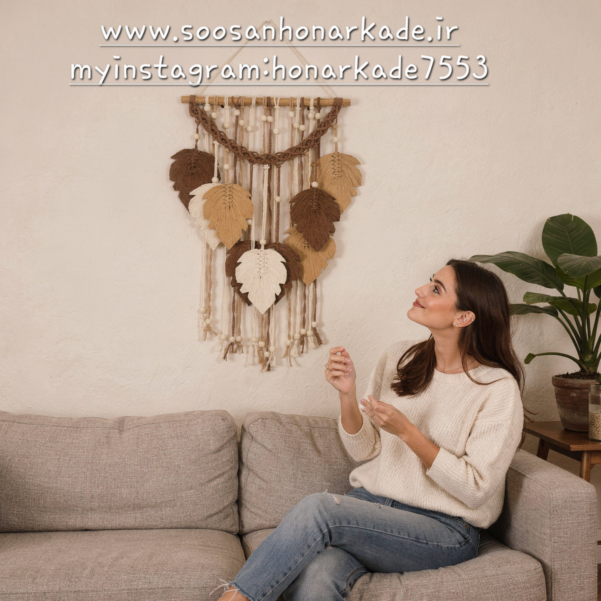دیوارکوب مکرومه بافته شده با نخ های مکرومه طرح برگ انجیری سبک مدرن