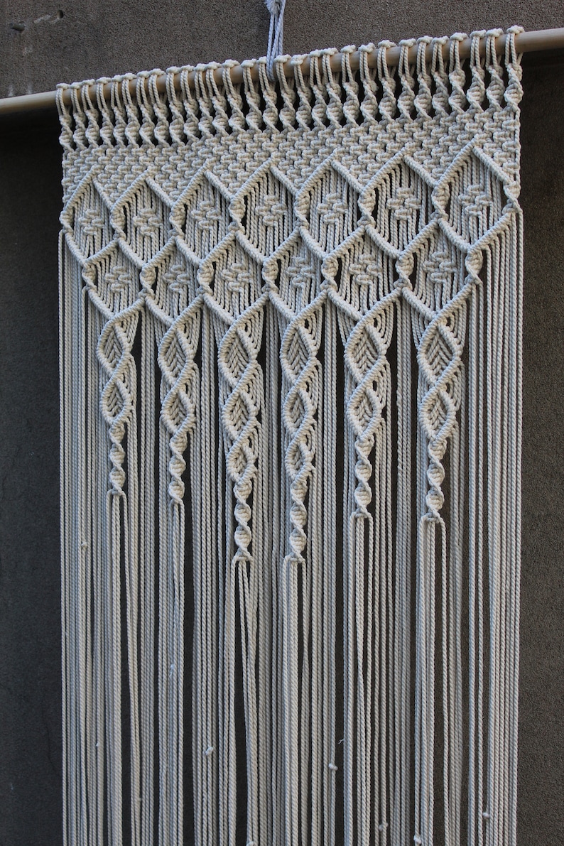 پرده مکرومه طرحدار با مدل لوزی دنباله دار با رنگبندی متنوع و ایعاد موردنظر کدسفارش محصول ۰۶۳۰