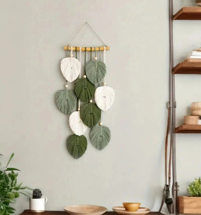 دیوارکوب بافتنی مدل برگه مکرومه طرح اقاقیا رنگ سبز 1273