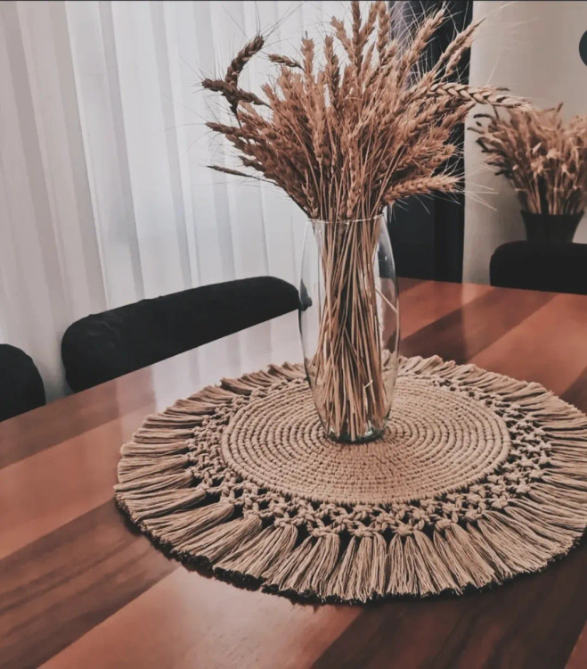 کفی بافته شده با نخ مکرومه قابل استفاده بعنوان زیر گلدان زیر بشقاب یا رومیزی