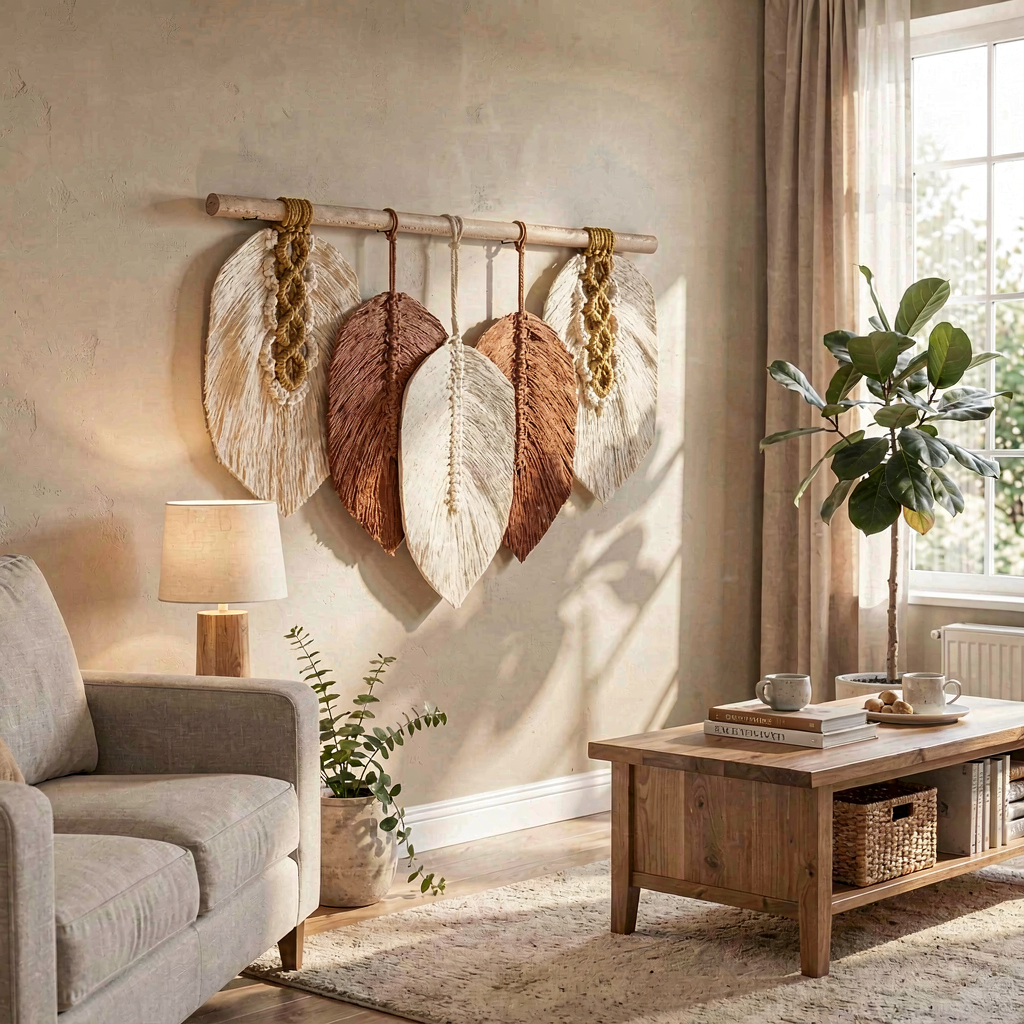 دیوارکوب مکرومه مدل برگ پهن و بزرگ در رنگهای مختلف کدسفارش ۰۱۰۰۹