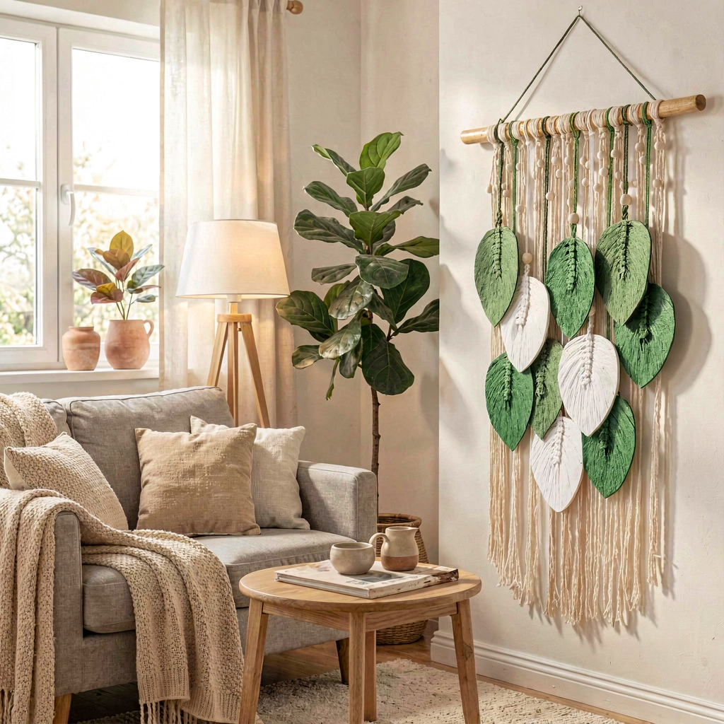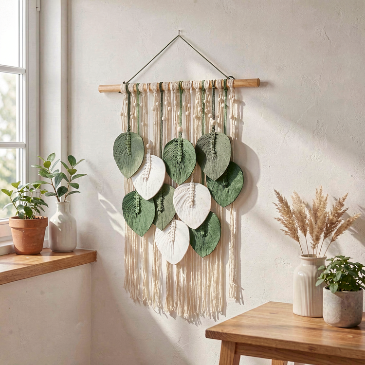 دیوارکوب مکرومه وآویز برگ مدل ده عددی ترکیب سبز در رنگهای مختلف کدسفارش ۰۱۰۱۳