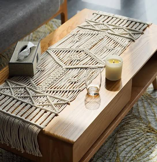 رانر مکرومه رومیزی بافته شده با نوع نخ مکرومه تابیده