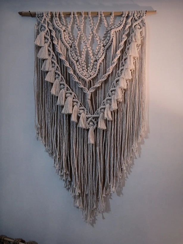 دیوارکوب مکرومه یا بوم ریس بافته شده با نخ مکرومه مناسب دیزاین خاص قابل سفارش در طرح و رنگ و سایزهای مختلف