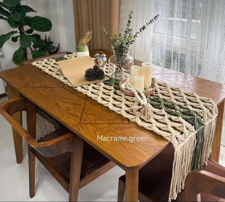 رانر رومیزی مکرومه طرح گره برجسته دورنگ رنگبندی و ابعاد به دلخواه کد 1298