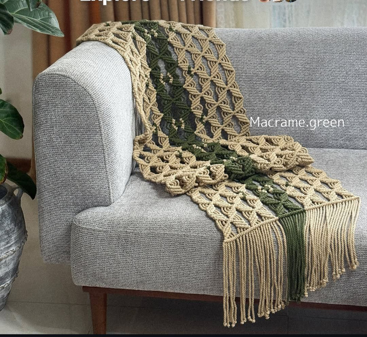 Macrame table runner, two-tone embossed knot design, color and dimensions as desired, code 1298