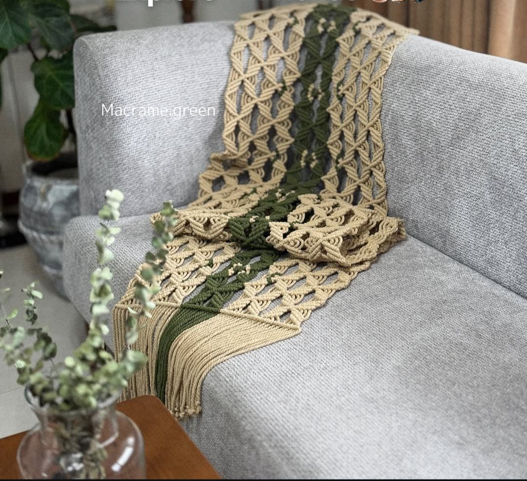 رانر رومیزی مکرومه طرح گره برجسته دورنگ رنگبندی و ابعاد به دلخواه کد 1298