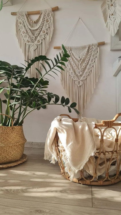 دیوارکوب مکرومه سایز متوسط بافته شده با نخ مکرومه