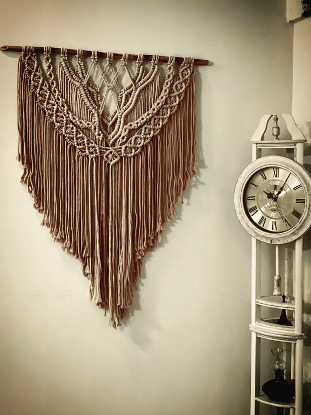 آویز مکرومه بافته شده با نخ مکرومه قابل استفاده در سایزها و رنگهای مختلف..