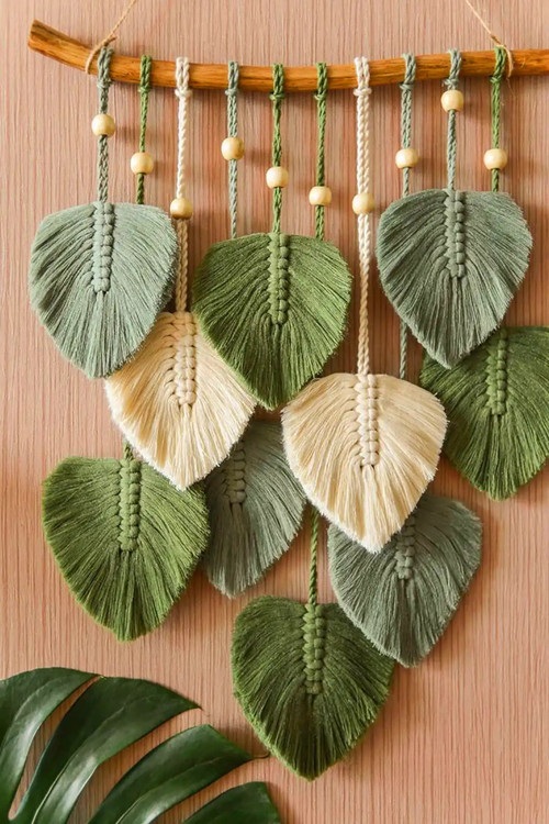 آویز و دیوارکوب مکرومه بافته شده با نخ مکرومه تابیده شده