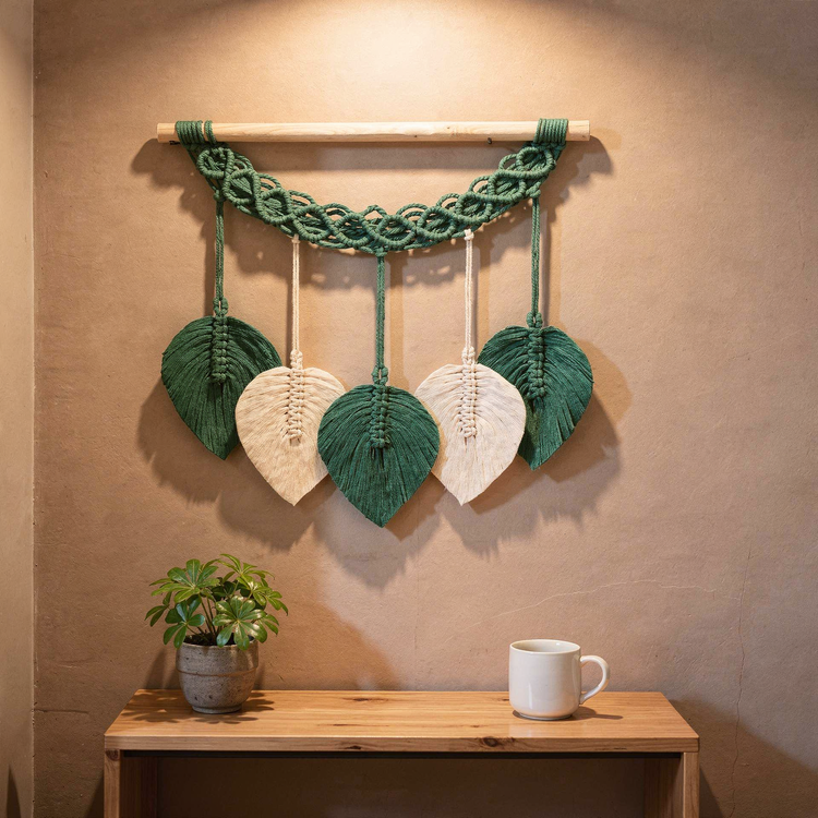 دیوارکوب مکرومه طرح برگ 5عددی با رنگبندی دلخواه