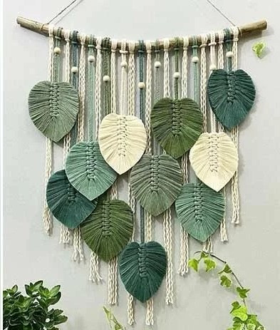 Macrame wall hanging, leaf design, smooth wood, optional color, wood size 80, code 2427